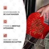 Deze hartvormige likmat met een XO patroon maakt het oplikken van al het lekkers extra uitdagend! De hond of kat zal goed zijn best moeten doen om alles in de hoekjes op te likken. Dankzij de zuignapjes aan de onderzijde kun je de likmat goed bevestigen aan een gladde ondergrond, zodat deze niet verschuift terwijl de hond of kat ermee bezig is.