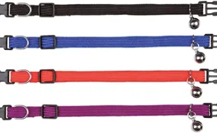 De Trixie Halsband Kat Nylon Assorti is een kattenhalsband voorzien van een ring en belletje en clicksluiting. Zo kun je jouw kat een adreskoker of penning meegeven en kan je viervoeter zorgeloos op pad! De halsband is traploos verstelbaar voor een goede pasvorm en sluit eenvoudig met de clicksluiting. Aan de ene ring hangt een belletje om ongeoorloofd jagen te voorkomen, de andere kun je ook gebruiken om een penning of adreskoker aan te hangen.