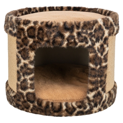 De Trixie Krabton Leo Panterprint Bruin is een luxe krabton waarin je kat heerlijk kan spelen, rusten en zich kan terugtrekken. De buitenzijde is bekleed met stijlvol panterprint pluche en voorzien van krabvlakken van jute, ideaal om aan te krabben. Binnenin bevindt zich een comfortabele schuilplaats met een zacht fleece interieur en een omkeerbaar kussen voor extra ligcomfort. Bovenop biedt een bekleed ligplateau een fijne uitkijkplek.