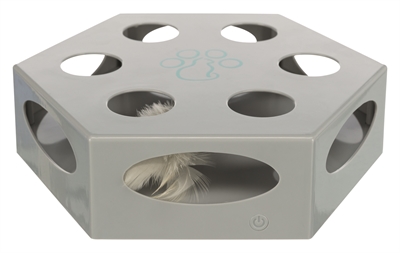 De Trixie Turning Feather Assorti is een interactief speeltje voor nieuwsgierige katten. De veer in het midden beweegt onvoorspelbaar heen en weer, stopt af en toe en verandert willekeurig van richting – perfect om het jachtinstinct van je kat te prikkelen. Het speeltje kan worden gevuld met kleine beloningssnoepjes voor extra motivatie. Dankzij de rubberen voetjes blijft het stevig staan tijdens het spelen. Na ongeveer 15 minuten schakelt het automatisch uit. Werkt op 3 AA-batterijen (niet inbegrepen).